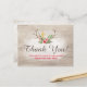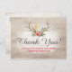 Rustic Deer Antler Bohemian Floral Wood Thank You Postcard