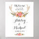 Rustic Deer Antler Floral Wedding Reception Sign Poster Template.