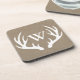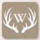 Rustic Deer Antlers Faux Burlap Family Initial Coaster