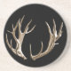 Black, sandstone drink coasters with picture of deer antlers. Rustic decor for a country style home, or for the hunter.