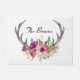 Rustic deer antlers embellished with colourful flowers in purple, magenta and pink. Edit the name with your own family name or other text. You can also change the white background colour by choosing "customise it" and selecting a different background.