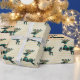 Rustic, plaid teal deer pattern with boho, green pine cones and pine needles in antler with a gold ribbon around neck. Gold chevron background.