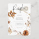 Celebrate love amidst the enchanting beauty of nature with our exquisite fall-themed wedding reception card. Adorned with graceful, delicate wildflowers and foliage in captivating hues of rust, gold, beige, and brown, these invitations evoke the warmth and romance of the autumn season. The intricate details of the wreath encircle the elegant text area, setting the perfect tone for your special day. Invite your guests to join you in a celebration filled with love, laughter, and the breathtaking charm of fall. Created by Simply Farmhouse Press.