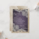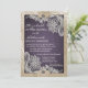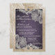 This chic denim, lace & leather look rustic wedding invitation features a leather background with denim and delicate ivory lace graphic. There are leather look tabs with rivets too. If you want a rustic country feel coupled with a chic and elegant look then this would certainly set the mood. You can easily customise this online. Plum denim look and champagne coloured leather. (everything is ink)