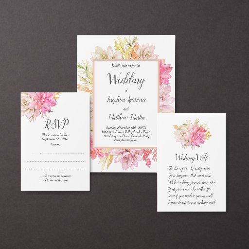 These wedding wishing well cards feature a rustic watercolor succulents design. These cards are part of a collection which includes other matching wedding stationery products. Please visit the collection page in our store to see the full range of products that you can fully personalise for your wedding day.