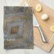 Rustic Diamond Pattern Aged Wood Brown Blue Tea Towel