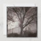 Rustic Distressed Tree Silhouette Grunge Design at sunset in a deep purple haze colour with a fence in the background. It has a tree silhouette with beaches. A great fall or autumn design.