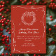 Rustic red non-photo Christmas cards with white wreath illustrations and your personal message are a charming way to send holiday greetings with warmth and elegance. This beautifully designed holiday card features a rich red background, accented with a whimsical white hand-drawn Christmas wreath, playful swirls, and scattered stars, creating a cosy and cheerful feel. The modern handwritten typography paired with a heartfelt holiday message adds a personal touch, perfect for family Christmas cards. The back design continues the festive aesthetic with a bold white polka dot pattern on the same red background, bringing a fun, wintry vibe. Ideal for those seeking a stylish, minimalist Christmas card design with a traditional holiday colour scheme and timeless seasonal charm. Available as printed cards or an instant digital download.