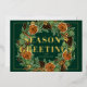 Send heartfelt holiday cheer with this elegant Season’s Greetings card from the Rustic Dried Orange and Pine Holiday Collection. The front features shimmering gold foil script with customisable text, framed by a hand painted watercolor winter greenery wreath of pine sprigs, eucalyptus, cinnamon sticks, dried oranges, pine cones, and brass jingle bells. A rich deep green background with a gold border adds an elegant sophistication. On the back, a creamy ivory design with dark green border and customisable text offers space for your family’s name or warm wishes. Perfect for families, couples, or businesses wanting a festive yet timeless design, this card pairs beautifully with coordinating ornaments, photo cards, plates, napkins, and gift tags from the collection for a complete holiday suite.