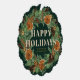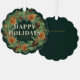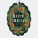Send a greeting that doubles as a keepsake with this paper ornament card from the Rustic Dried Orange and Pine Holiday Collection by Porch and Gable Design. The front features a watercolor pine wreath with dried oranges, winter greenery, cinnamon sticks, eucalyptus, pine cones, and festive brass bells on a rich dark green background. The text reads “Happy Holidays” with customisable space below for a family name, business name, favourite holiday phrase, or the year making it easy to add a personal touch. On the back, there’s room for your handwritten or printed message, turning this into a heartfelt holiday card and a charming ornament your loved ones can hang on their Christmas tree.