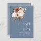 Rustic Dusty Blue and Rust Floral Save the Date Card. Announce your big day with this romantic save the date card featuring dusty blue tones and florals in rust, peach, and ivory. Ideal for rustic spring or summer weddings, this design pairs perfectly with countryside or garden celebrations. A soft and stylish start to your suite.