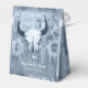 This rustic country dusty blue western boho sunflowers favour boxes are sure to be a delight on your wedding day. Rodeo cowboy bull skull with horns country floral texture, barn wood vintage bohemian. Farmhouse cowgirl style design. Look for matching products in this collection. Image copyright Marg Seregelyi Photography.