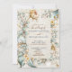 Rustic Dusty Blue & Gold Floral Greenery Photo Invitation