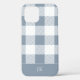 Rustic Chic Dusty Blue and White Buffalo Plaid Pattern, monogram iPhone case.