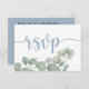 Simple and modern wedding rsvp card with elegant typography in dusty blue on a white background, with the addition of eucalyptus watercolor foliage. Customise with ease.