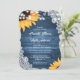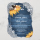 Rustic Dusty Blue Wood Lace Sunflower Wedding Invitation