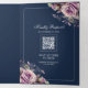 Rustic Dusty Purple Floral Navy QR Code Wedding Tri-Fold Invitation