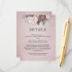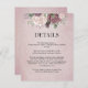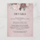 An elegant wedding detail card featuring large roses in shades of light pink on a rich rustic dusty rose background. The back of the card has the same background with a small floral arrangement in the centre. This beautiful invitation is part of a matching wedding suite that can be fully personalised.