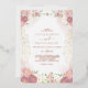 Perfect for a fall wedding, this all-in-one invitation features a stunning earthy palette with rustic watercolor florals in terracotta, copper, burnt orange, peach, blush pink, and cream. The vintage boho design is elegantly accented with luxurious rose gold foil text on the front. Save paper by including wedding details on the back instead of a separate enclosure card, with the option to add RSVP information for electronic replies. A stylish and sustainable choice for your special day.