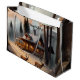 Two deer in front of a log house on the front of this gift bag. A cabin on the back side. This is a rustic watercolor design. Great for dad on Father’s Day. Personalise with a name or message.