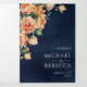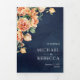 Rustic Earthy Peach Floral QR Code Navy Wedding Tri-Fold Invitation