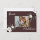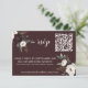 Make responding to your wedding simple and stylish with this modern rustic RSVP card, featuring a personalised photo and QR code for easy online replies. Designed with a timeless yet contemporary look, it showcases deep burgundy, ivory, and soft blush florals with delicate greenery and gold accents, creating a warm and romantic feel. The rich burgundy background adds a sophisticated touch, while elegant modern script and classic serif fonts highlight your details beautifully. Perfect for autumn, winter, or rustic-inspired weddings, this RSVP card blends convenience with elegance, making it effortless for your guests to respond.