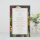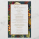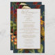 Ethereal floral bouquets with shades of dark red, rusty orange, yellow to harvest gold and lush greenery give this dark botanical "Welcome" wedding program design a look of deep, rich modern rustic elegance that is sure to impress your recipients. Available in a variety of colours. Shown here with a dark teal background on front and back. Modify all template fields as desired except for "Welcome" and "and" which are uneditable except by the designer. Composite design by Holiday Hearts Designs (rights reserved).