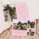Rustic and elegant wedding thank you card featuring a typography text that says "thank you" in a font that is mixed with script and serif fonts. This template has 3 pictures on the front and 1 on the back. The background colour is pink.