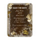 Rustic brown background with white roses and gold wedding rings. This beautiful save the date magnet is a stylish, long lasting way to announce your big day. Personalise the magnet by changing the text in the fields provided. You can change font style, size, and colour.