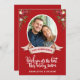 This rustic, elegant Christmas photo card features your favourite photo in an oval white frame with a personalised banner. Features florals and greenery on a red background and a modern calligraphy "Wish you all the best this holiday season." Personalised with your name below.