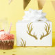 Rustic wrapping paper featuring faux gold glitter print deer a antlers pattern. The background is white.