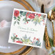 Wedding reception personalised paper napkin featuring rustic modern watercolor Christmas traditional botanical borders with holly berries, red and ivory flowers, pine cone, fir boughs, seasonal foliage, and green typography script.++++++++++++ Ideal for your winter, Christmas floral, elegant rustic themed weddings. +++++++++++++ Personalise it with the bride's and groom's names and wedding details!
