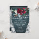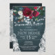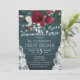 Elegant chic winter housewarming party stylish invitation template on a dark midnight navy blue chalkboard featuring a beautiful red burgundy and white peony roses bouquet with dark green foliage, strings of white twinkle lights, lace corners, and a handwritten calligraphy script. ++++++++++++++ Easy to personalise with your details! +++++++++++++++ The invitation is suitable for elegant winter rustic country / farmhouse / cottage / Christmas new home celebration parties.