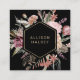 This unique floral design conveys a stylish elegance with its rustic bouquet of mixed floral elements in neutral colours over a black background. Colours include beige, peach, pink, off-white and terracotta with moss-green leaves and stems. This unique design has a geometric hexagon frame in the centre surrounded by a faux gold foil border. The look is casual sophistication with elegant charm. Personalise with your name and details.