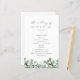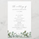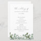 Complete your 'day of' wedding stationery with a beautiful ceremony program, featuring watercolor eucalyptus and soft grey typography. Customise the reverse side to list the members of your wedding party.