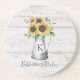 Rustic Elegant Monogram Sunflower Eucalyptus Coaster