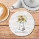 Add rustic charm to your home with this elegant monogram coaster featuring sunflowers, eucalyptus, and a floral botanical design. Great for farmhouse vibes!