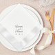 Custom-designed wedding cocktail paper napkins featuring simple elegant black and white design.