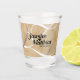 Add a touch of vintage charm to your special day with this commemorative rustic shot glass, which features white serif and script lettering on a (simulated) stained and faded burlap / canvas / rough linen / kraft paper texture background. Customise with newlyweds' names, an initial or monogram for the surname, and wedding date.