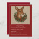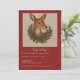 This cosy invitation features a rustic deer accented with holiday greenery, pine branches, and berries, all in embroidery-style on a linen-inspired background. The natural palette of browns, greens, and reds adds festive farmhouse warmth. AI-assisted design enhances the handcrafted look.