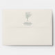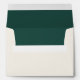Off white envelope with emerald inside. Back flap features emerald illustration of bouquet and return address.