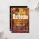 Rustic, wood background with photos of chicken wings at top left corner and barbecue ribs at bottom on front. Includes customisable text on front and back of card -templates are at right. Reverse side has a smokey, dark background with photo of pork barbecue ribs at bottom.
