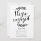 This rustic engagement party dinner wedding invitation design features hand drawn country laurels with a fun calligraphy font.