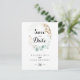 This rustic eucalyptus gold calligraphy save the date postcard is perfect for a floral wedding. This artistic design features hand-drawn gold floral an watercolor eucalyptus green foliage, beautifully arranged in an elegant geometric frame.
