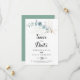 This rustic eucalyptus gold floral calligraphy wedding save the date is perfect for a simple wedding. This artistic design features hand-drawn gold floral and watercolor eucalyptus green foliage, inspiring natural beauty.