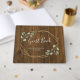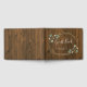 This rustic and trendy wedding or bridal shower guest book features romantic watercolor eucalyptus leaves and foliage on a faux gold geometric centre frame. The background is made to look like rustic brown wood. A simple yet stunning look for your wedding.