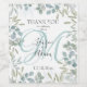 This is a rustic watercolor design featuring eucalyptus leaves and foliage decorating the edge of the label. The text is easy to edit with your unique details.
