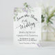 This beautiful save the date card will give your friends and family advance notice of your upcoming wedding. It features a beautiful hand painted watercolor design with elegant script calligraphy, and sprigs of eucalyptus leaves and lavender flowers on a marbled dusty blue background.