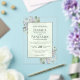 Invite your loved ones to share in your joy on your wedding day with these gorgeous acrylic invitations. The stylish boho chic design features your names prominently displayed in bold letters while the introduction and other notes feature fancy script calligraphy with swashes on the ends of the letters. The text is displayed on a marbled pale sage green colored background. The outside border of the invite is transparent acrylic with hand painted watercolor sprigs of eucalyptus leaves, greenery, and lavender flowers decorating the corners. Elegant, classy, sophisticated and beautiful, these wedding invitations are perfect for a country wedding.
