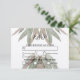 This design features rustic eucalyptus leaves. The eucalyptus greenery is complimented by elegant black typography. The dusty green tones of the eucalyptus leaf create a rustic country woodland garden feel. The reverse side mimics the simple eucalyptus design of the front. Elegant wedding RSVP acceptance card design with modern elements. Matching wedding invitations and other stationery items are also available.